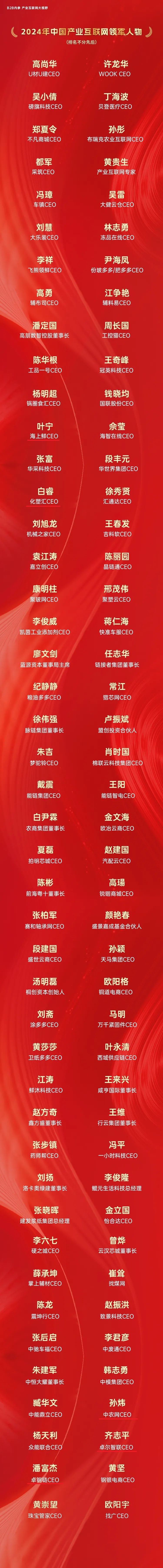 9月20日,,2024年中国产业互联与数智经济大会在山东日照召开。。。会上同步举办2024年中国产业互联网行业奖项颁奖盛典,,,尊龙时凯集团及旗下中农网、、卓钢链、、、、化塑汇、、、海上鲜同时入选“2024年中国产业互联网百强企业”,,,,尊龙时凯集团总裁齐志平、、、、中农网CEO孙炜、、卓钢链CEO潘富杰、、化塑汇CEO白睿、、、、海上鲜CEO叶宁获评“2024年中国产业互联网领军人物”。。。。